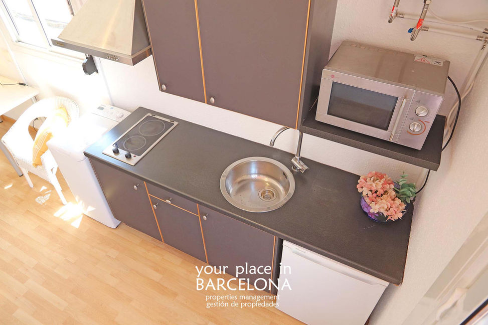 Precioso estudio-ático exterior de 30m2 con salida a una gran terraza privada de otros 30m2 con vistas a la Sagrada Família y toda Barcelona. Un solo ambiente con sofá-cama, armario empotrado y cocina integrada. Amueblado y equipado. Aire acondicionado. Suelo de tarima flotante. Muy luminoso. Baño con media bañera. Octava planta en finca con ascensor y acceso exclusivo por escalera a este ático, único en planta. También cuenta con terrado comunitario. IBI y gastos de comunidad incluidos. Suministros de luz y agua dados de alta. Solicitar más información por e-mail. - NO SE ACEPTAN MASCOTAS!